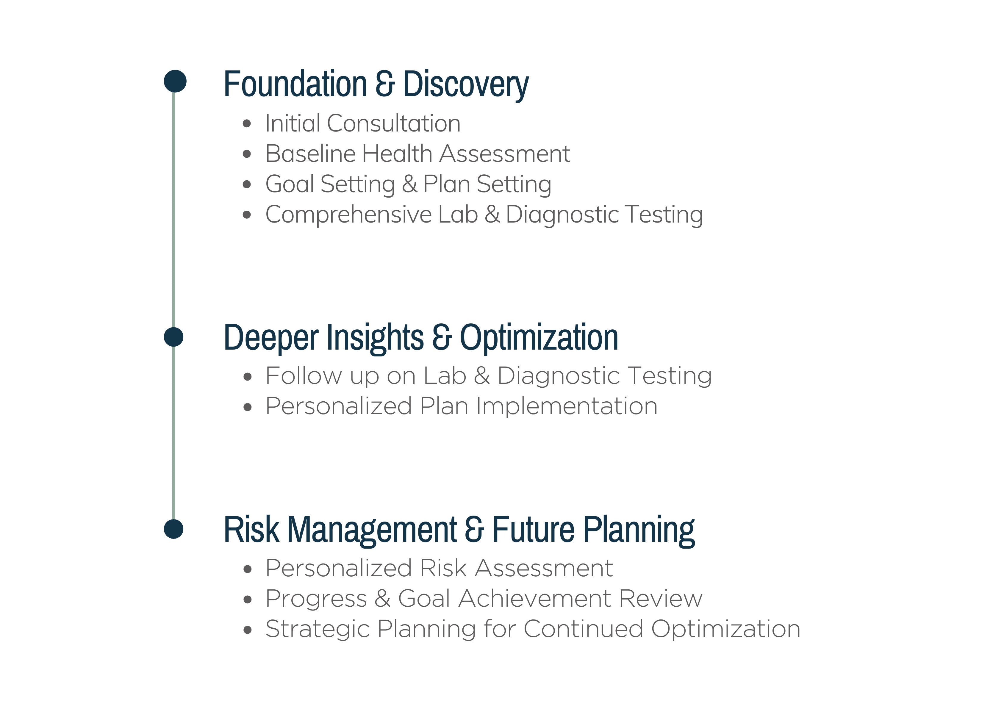 Unlike any other longevity clinic, we provide in-person comprehensive testing that goes beyond the basics, ensuring a truly tailored approach to your health. While we focus on longevity and achieving your long-term health goals, you'll also enjoy immediate benefits that make every step of the journey worthwhile.